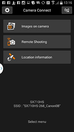 Once you’re connected, the smartphone app presents three options: Images on Camera, Remote Shooting and Location Information. The first option presents a series of thumbnails which you can examine before copying over if desired. The remote control option presents a live view of the scene with the chance to zoom the lens, adjust the exposure manually if desired, along with choosing various AF and drive options. I was impressed to find manual exposure control here – indeed it’s a new feature for the SX710 HS – but sadly there was no chance to tap to reposition the AF area using your smartphone. In contrast, the Lumix Image App not only lets you tap to reposition the AF area using your handset, but also lets you do it while filming a video to pull-focus without ever touching the actual camera. Neat.