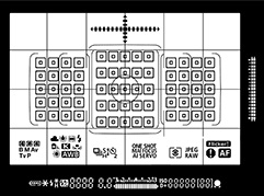 New to the Mark II are a strip of icons and characters running along the bottom which appear (illuminated red against the viewfinder screen) when you’re adjusting the white balance, metering, drive mode and AF mode. This is a very cool feature as it allows you to very easily adjust these settings without taking your eye from the viewfinder. There’s also a dual-axis leveling gauge.
