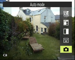 Shooting modes are selected on the COOLPIX S3600 by pressing the shooting mode button labelled with a green camera icon on the rear panel. When you do this, a menu with five options appears on the right edge of the screen. The first of these is Scene auto selector, a Scene detect auto mode which chooses one of ten scene modes depending on the subject. Scene auto selector includes two portrait modes, two night portrait modes, two backlighting modes, landscape, night landscape, close up and a catch-all ‘other’ mode.