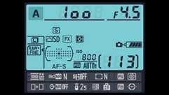 Other information displayed along the bottom of the viewfinder includes metering mode, exposure information and card and buffer capacity. But there’s a wealth of other information that can be displayed here depending on the shooting mode and current operation including AF Area mode, Exposure/Flash compensation, Active D-lighting amount, bracketing indicators and so on. Another minor difference with the D800 is that there’s no built in blind to prevent stray light entering the viewfinder and producing false exposure meter readings, instead a clip-on cap is provided.
