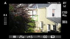 To enter Live View on the D610 you turn the switch on the rear panel to the camera icon then press the LV button in the middle. Four display overlays are available and pressing the info button cycles through them. The first is a dual axis levelling gauge which the pilots among you will recognise as looking very similar to an aircraft attitude indicator showing pitch and roll. The next option displays additional shooting information, followed by a clean screen and finally a grid overlay, but, alas, still no live histogram – pretty daft when you consider many budget compacts offer them.
