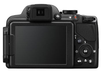 Like most super-zooms, the screen and EVF provide alternative options for viewing the same information, you can’t for example use the EVF for live view while displaying exposure information on the screen. The COOLPIX P520 employs a unique (among these three models, at any rate) method for switching between the EVF and the screen. The EVF is only active, when the screen is in the closed position. Flip it out and the screen becomes the viewer, with the EVF automatically switched off.