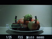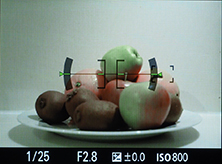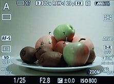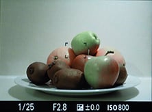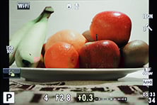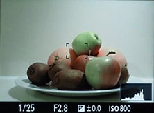 Olympus has resisted equipping the STYLUS 1 with in-camera HDR, but it does offer a wide variety of control over tone. First of all there’s the Gradation option which can be set to Normal, High and Low, the latter pair corresponding to High Key and Low Key; you can see their effect on an interior composition below; the histograms are for the interior scene, not the fruit bowl. Alternatively, pressing the exposure compensation button followed by the INFO button lets you adjust the tone curve, first by adjusting the shadows, then pressing INFO again to adjust the highlights.