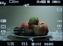 When set to its movie mode, the RX10 can additionally display very generously sized stereo level meters and lets you manually adjust them if desired from the menus.