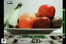 Oh yes, I almost forgot: there’s also iAUTO for foolproof operation – this also offers a number of Live Guides which help you implement certain effects with on-screen controls. Using an on-screen touch palette you can change things like the colour saturation, brightness, and depth of field, or display basic tips on taking certain types of photos.