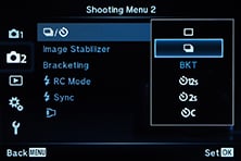 Auto Exposure Bracketing is available on the STYLUS 1 for two or three frames at 0.3, 0.7 or 1EV increments. The FZ200 is also limited to three frames, although at increments up to 3EV apart. Meanwhile the RX10 is best-equipped in this regard, offering three frames at 0.3, 0.7, 1, 2 or 3EV increments, or for five frames in 0.3 or 0.7 EV increments. You can set the drive mode to Single or Continuous for any of these bursts, although for the latter you will need to keep the shutter release held.