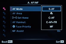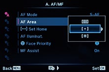 There’s four AF modes on offer: Single AF, Super Macro (for autofocusing down to 5cm), Continuous AF and AF Tracking. In all but the AF Tracking mode you can position the AF area. In AF Tracking a target appears in the middle of the frame which you position over the subject you’d like to track; to select and subsequently track the subject, just keep the shutter release half-pressed. If the subject has sufficient contrast or colour difference from its surroundings, the tracking works well, at least in terms of keeping the frame over the subject. After that it’s down to how effective the camera is at adjusting the AF system for subject distance.