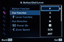 The STYLUS 1’s mode dial offers the usual PASM and Auto modes, along with SCN, ART effects, Photo Story and two custom positions. There’s no movie mode on the main dial, but you can start filming video in any relevant mode by simply pressing the red record button.