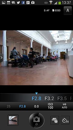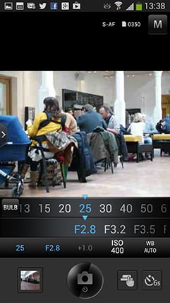 Once connected the app offers four main options: Remote Control, Import Photos, Edit Photo and Add Geotag. I’ll cover each in turn. Tapping Remote Control lets you see a live image from the camera and refocus it by tapping on your phone or tablet’s screen. Impressively you can remotely change the exposure mode between Program, Aperture Priority, Shutter Priority, Manual and iAUTO without touching the camera’s mode dial. Depending on the selected mode, you can then tap to adjust the shutter speed, aperture, exposure compensation, ISO and white balance, along with changing the drive mode, and of course triggering the exposure.