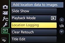 At some point you’ll need to transfer the location data recorded by your phone into the GM1, and this process again starts by connecting the camera to Lumix Image app running on the phone. Then from the satellite section, choose to ‘Send Location Data’, which normally takes a few seconds. This seems satisfyingly quick and simple, but the transfer is only one half of the process. The second is to have the camera actually apply the data to your images. To do this choose Location Logging from the GM1’s Playback menu, then select ‘Add Location Data’. You’ll then be presented with a list of date ranges for the periods where location data is available.