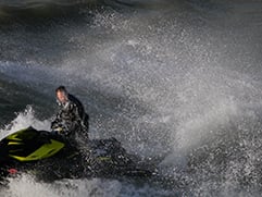 The continuous shooting capabilities are certainly very usable, but it’s also important to compare them against its compact rivals. In my tests the Canon S120 could shoot Large Fine JPEGs at 15.62fps for an initial burst of five frames, then at 9.43fps until it ran out of memory. Meanwhile the RX100 II can shoot at 10fps, but only for a short burst of 13 frames. If you want to shoot longer bursts with the Sony you need to drop the speed to 2.5fps, which isn’t as useful as the 5fps unlimited mode on the GM1. So the GM1 and RX100 II actually share similar capabilities when shooting at 10fps, but the GM1 is quicker if you choose the reduced speed for unlimited frames. Meanwhile after years of producing cameras with terrible continuous shooting capabilities, Canon looks like its finally nailed it with the S120, which beats its rivals by delivering around 10fps for as long as memory remains. As Live View cameras though, none are great at tracking action as it goes past though – indeed you can see I struggled to keep the jetski in the middle of the frame in my GM1 burst above.