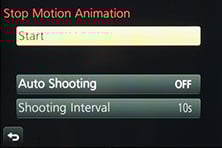 The Time Lapse Shot timer can be set to record up to 9999 frames at intervals from one second to a second shy of 100 minutes, and you can delay the starting time by up to 24 hours. The Stop Motion mode can also be set to record at regular intervals, or you can trigger the shutter by hand each time, allowing you to create animated movies.