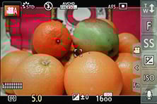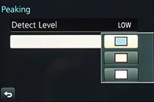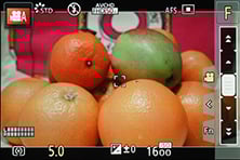 When the top dial is set to MF you can enable a wealth of manual focusing assistance. First there’s a magnified view, either using a small window in the middle showing an enlarged view at 3x to 6x, or a full-screen view at 3x to 10x.