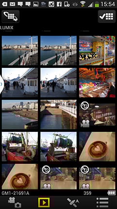 To maintain a responsive experience which feels like the images are stored locally on your phone or tablet, the camera sends a lower resolution version. So you can pinch to zoom-in a little, but not as much as if you were viewing the original. But when you see an image you like, just press and hold it on-screen for a second and the Lumix Image app will let you save the original to your device or start uploading it to one of the social, sharing or storage services installed on your device. You can configure the app to provide shortcuts to two or three of your most used services which could include Dropbox and Instagram in addition to the more usual suspects. Or of course once the image is copied into your device, you could just exit the Panasonic app and handle it direct from whichever sharing or storage app you like via your phone’s gallery.