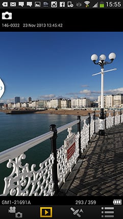 Once your phone or tablet becomes connected to the GM1, you can remote control it, browse the images direct from the memory card, copy them onto the handset and if desired send them onto various storage or sharing services. You can also set the app to make a GPS log for subsequent syncing and tagging, which I’ll cover in a separate GPS section below.