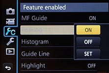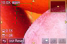 You can also opt for Manual focusing assistance with either a small window in the middle showing an enlarged view at 3x to 6x (again in single or 0.1 step increments), or a full-screen view at 3x to 10x. In a really neat upgrade over its predecessor, not to mention the flagship GH3, the GX7 also offers focus peaking introduced on the G6.