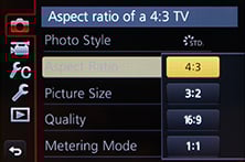 This is always the compromise when choosing a screen or panel that has to accommodate different shaped content, and a particular issue for Micro Four Thirds as its native 4:3 aspect ratio for stills is much squarer than the 16:9 shape for HD video. If you choose a 16:9 panel, then 4:3 stills will sit in the middle with thick black bars on the left and right sides. If you choose a 4:3 panel, then HD video will be letterboxed between thin bars at the top and bottom.