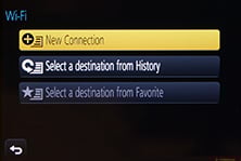 If your phone / tablet doesn’t have NFC you’ll now need to press the Wifi button on the back of the camera and either create a new connection, or load one you’ve previously configured. If you’re creating a new connection you can choose from ‘remote shooting and view’, ‘playback on TV’, ‘send images while recording’ or ‘send images stored in the camera’. For a smartphone / tablet connection, you should choose the first option for remote shooting and view. This then sets up the GX7 as a wireless access point, displaying the SSID name and password. You’ll then need to start the Lumix Image app, select Wifi as your means of connection, select the GX7’s network and enter the password.