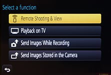 You can also adjust the drive mode, ISO, white balance, exposure compensation or focus area, and there’s also a Q.Menu button which presents a list of additional options you can remotely change including the flash mode, aspect ratio, resolution, compression, metering mode, photo style or movie quality.