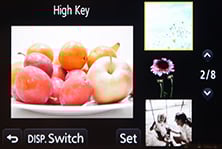 While cycling through these options, the camera previews the effect on a live thumbnail, and most effects can also be applied to movies by simply pressing the red record button. Here’s an example of the miniature mode applied to a movie, which simply inherits your existing quality settings – this makes it easy to record a 1080p miniature movie.
