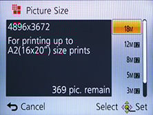 As before, there’s a wealth of alternative image resolutions and sizes. You can shoot in the full 18 Megapixels, or at 12, 8, 5, 3 or 0.3 Megapixels in the 4:3 aspect ratio, or switch to 3:2, 16:9 or 1:1 cropped shapes instead, each with reduced resolutions. There’s also the choice of two JPEG compression levels, Fine or Standard, although as expected, no RAW option.