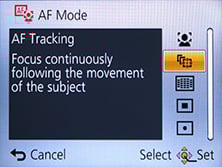 The second AF mode is AF Tracking, which is essentially like face detection for non-human subjects. This allows you to place a target over a subject, after which the TZ40 / ZS30 will track it across the frame and adjust its focus as required. Again, it’s possible to tap on the desired subject using the touch-screen.