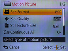 Panasonic quotes both the AVCHD and MP4 modes as being restricted to clips with a maximum length of 29 minutes and 59 seconds. Finally, Panasonic recommends using an SD card rated at Class 4 or faster for recording movies.