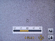 To make changes to the aperture or shutter, just press the Exposure / Map button on the back of the camera, and then use the cross-keys to adjust the setting highlighted in yellow at the bottom of the screen; there’s no touch-control over exposure. As before you can apply +/-2EV exposure compensation or bracket three exposures up to 1EV apart; there’s also an HDR scene preset I’ll describe later.