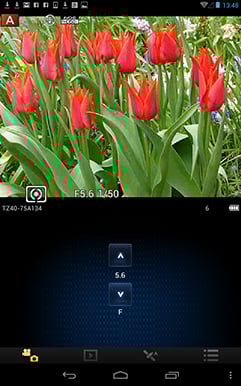 To maintain a responsive experience which feels like the images are stored locally on your phone or tablet, the camera sends a lower resolution version. So you can pinch to zoom-in a little, but not as much as if you were viewing the original. But when you see an image you like, just press and hold it on-screen for a second and the Lumix Image app will let you save the original to your device or start uploading it to one of the social, sharing or storage services installed on your device. You can configure the app to provide shortcuts to two or three of your most used services which could include Dropbox and Instagram in addition to the more usual suspects. Or of course once the image is copied into your device, you could just exit the Panasonic app and handle it direct from whichever sharing or storage app you like.