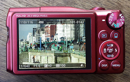 Round the back of the camera you’ll find a 3in screen with a 4:3 aspect ratio and 922k dot resolution. Like most Canon screens, it’s bright and detailed, but of course not immune to direct sunlight. This is where the Lumix TZ70 / ZS50 has a key advantage with its built-in electronic viewfinder, which may be small but offers an alternative means of composition that’s not just valuable in bright conditions, but also for providing extra stability when the camera’s held to your face. Like its rivals, the screen on the SX710 HS is not touch-sensitive, a feature I’m personally very fond of and disappointed not to find in any of the current crop of pocket super-zooms. In terms of shooting guides you can super-impose an alignment grid, but unlike the Lumix , there’s no live histogram option.