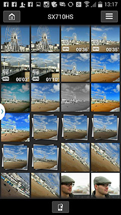 Once you’re connected, the smartphone app presents three options: Images on Camera, Remote Shooting and Location Information. The first option presents a series of thumbnails which you can examine before copying over if desired. The remote control option presents a live view of the scene with the chance to zoom the lens, adjust the exposure manually if desired, along with choosing various AF and drive options. I was impressed to find manual exposure control here – indeed it’s a new feature for the SX710 HS – but sadly there was no chance to tap to reposition the AF area using your smartphone. In contrast, the Lumix Image App not only lets you tap to reposition the AF area using your handset, but also lets you do it while filming a video to pull-focus without ever touching the actual camera. Neat.