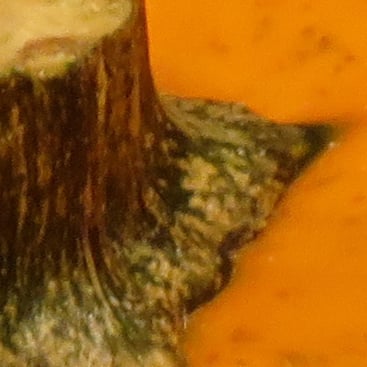 Under the conditions of the day (shooting a macro of a pumpkin stalk), I required a shutter speed of 1/60 to handhold the shot without stabilisation or camera shake. But with stabilisation enabled, I managed to handhold down to 1/4, corresponding to four stops of compensation. You can see the unstabilised and stabilized versions at 1/4 above and the benefit of the latter is clear. As you’ll see in my movie samples below, the stabilisation is also very effective when filming video.