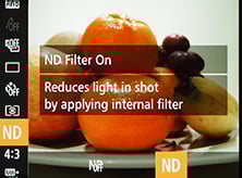 The Canon PowerShot S120 may not have a filter thread, but retains the useful built-in Neutral Density (ND) filter of earlier models, allowing you to reduce the exposure by three stops by simply enabling the feature in a menu. This can be useful for achieving slower shutter speeds to blur motion or to employ the largest apertures even under bright conditions.