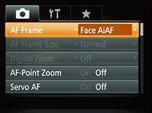 There’s two main AF modes to choose from: Face AiAF and 1-point. The former attempts to identify a face first, then falls back on a traditional nine-area system. The latter focuses on a single area which you can move by simply tapping the desired part of the screen; you can also adjust the frame size between large and small. There’s also tracking AF in the Auto modes which again is activated by just tapping on the subject you’d like the camera to follow; if there’s sufficient contrast or colour difference between it and the surroundings, this can work well.