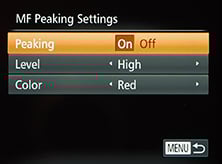Moving on, once you start filming the exposure control is fully automatic, although if preferred, you can lock the exposure or adjust it in a +/-2EV range prior to filming. You can also manually focus before filming and use the new focus peaking to confirm focus, but once you start recording you can’t make any further adjustments; interestingly the focus peaking remains active while filming if desired, but again you can’t manually adjust the focus once you start filming. Compare this to, say, the Sony RX100 II which supports PASM exposure modes when filming along with manual focusing with peaking too.