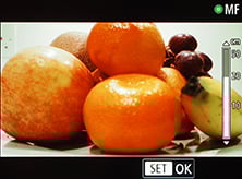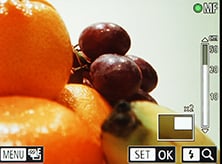 Further manual focus assistance is available in the form of the Safety MF option which lets you get the focusing close by hand, then finishes it off automatically at a half-press of the shutter release. Alternatively you can opt for the focus bracketing mode which takes three shots: one at the manually focused distance, and the others a little closer and further. The nearer and further increments can be set to small, medium and large.