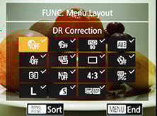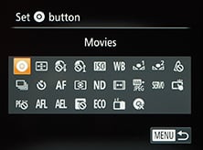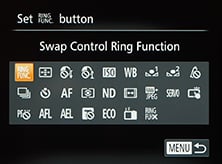 It’s possible not just to customise the finction of the Ring control, but also of the movie record button. You can even choose which items appear on the super-imposed FUNC menu, as seen in the screengrabs below.