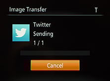 When you upload an image to Facebook or Twitter you can now add a caption entered using the camera’s touch-screen interface (up to 80 characters for Twitter and 120 for Facebook) and choose to resize the image if desired. The image and caption are then sent to the Canon iMAGE GATEWAY which shares them onto your desired network. The images appear on your Timeline in Facebook, but on Twitter you’ll be posting a link to the Canon portal which may confuse some of your followers. I should note that like most cameras including Panasonic’s models, there’s no way to agree to any terms and conditions of a Wifi network which sadly rules out sending images via a public hotspot. The only cameras I know of with browsers which can agree to public hotspot terms, and indeed upload direct to social networks, are Sony’s Wifi-equipped NEX models.