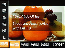 The big new feature is the ability to record at 1080p60. There’s also a 1080p30 mode as well as 720p30 and VGA (640 x 480) also at 30 frames per second. No doubt there’ll be those who mourn the passing of the earlier model’s 1080p24 mode, with its film-like qualities, but probably more will welcome the higher frame rate which provides the option for good quality half speed slow motion recording when played back at 30fps, something that Canon has thus far avoided on its DSLR range, at least at 1080p.Canon recommends using an SD memory card rated at Class 6 or quicker for movies.