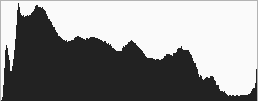 HDR Backlight Control captures three shots at different exposures and combines them automatically into one to extend the dynamic range; again the sensitivity is Auto, and there’s no control over tone-mapping either. Here’s an example I took inside a church where the interior was dim, but the windows strongly backlit. It’s clear to see how the dark shadow areas have been boosted on the HDR version, especially in the wooden seating – confirmed in the histogram below it. It’s hard to see in the reduced images below, but there’s also quite a lot of highlight detail recovered in the stained glass windows on the HDR version that was lost on the single exposure. So overall the HDR Backlight Control feature has worked well here.