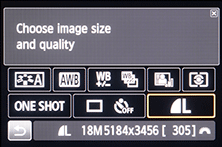 The EOS SL1 / 100D’s JPEGs can be recorded at four lower resolutions (8, 4.5, 2.5 and 0.3 Megapixels) and with the choice of Fine or Normal compression. RAW files are of course offered, at the maximum resolution and you can choose whether to record them individually or accompanied by a Large Fine JPEG. The multiple size and compression combinations of the 60D and 7D aren’t however available here. Best quality Large Fine JPEGS typically measure around 7MB each, while RAW files weigh-in around 24MB each. If you shoot in Live View, you can also choose from four aspect ratios: along with the native 3:2 shape, are 16:9, 4:3 and 1:1 options.