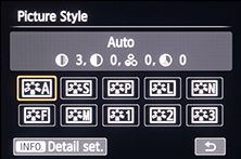The SL1 / 100D retains the Picture styles of its predecessor which apply sharpness, contrast, saturation and colour styles as collective presets with the choice of Auto, Standard, Portrait, Landscape, Neutral, Faithful and three User Defined options. A Monochrome option offers four filter and four toning effects. Also unchanged is the Auto Lighting Optimizer, which adjusts the brightness and contrast of images with dark areas, and Highlight Tone Priority, which (still hidden away in the custom menus) expands the dynamic range to retain detail in image highlights.