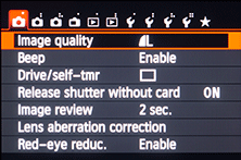 This functionality so far is similar to other cameras with touch-screens, but where Canon takes a lead is allowing you to navigate the main menu system by touch as well. This is something most manufacturers including Panasonic avoid. At first the tiny icons for each menu page look too small to successfully navigate by touch, but it actually works really well. I’m also relieved you can use the touch-interface to enter text for the copyright and author details, something other manufacturers still force you to do with the cross keys.