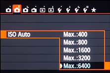 There’s also an Auto ISO setting, and the option to set the maximum sensitivity allowed between 400 and 6400 ISO. The PASM modes operate between 100 ISO and the maximum sensitivity set in this menu. The scene presets operate between 100 and 6400 ISO, apart from the Landscape setting which maxes out at 1600 ISO and the night mode which allows up to 12800 ISO. If you’re using Auto ISO with the flash, the sensitivity is fixed at 400 ISO, unless this results in an over-exposure in which case it’s reduced to 100 ISO. Bulb mode is also locked to 400 ISO if you’re using Auto ISO.