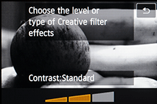 In Live View you can now apply the same seven Creative Filter which on previous models could only be applied during playback. You have the choice of Grainy Black and White, Soft Focus, Fish Eye, Art Bold, Water Painting, Toy Camera and Miniature.