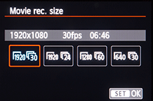 The EOS SL1 / 100D unsurprisingly inherits the same core movie capabilities deployed on most recent EOS DSLRs, albeit without the choice of compression of higher-end models. As such you can film 1080p at 24, 25 or 30fps, 720p at 50 or 60fps, or VGA at 25 or 30fps. The maximum duration is 29 minutes and 59 seconds with a maximum file size of 4GB. You’re looking at about 330MB per minute in any of the HD movie modes, with the 720 option consuming the same as the 1080 due to its higher frame rates; so that 4GB file limit will actually be reached after approximately 12 minutes, regardless of the HD quality setting. Once the file exceeds 4GB, another file is automatically created without interrupting the recording. A fully charged battery should be good for about one hour’s of shooting.