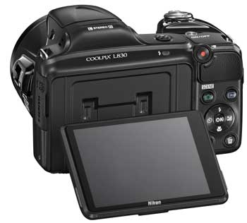 For the time being at least, the older L820 remains in the COOLPIX line-up. Like its predecessor, the COOLPIX L830 has a 3 inch 921k dot LCD screen but it’s now articulated and can be flipped up or down. Nikon has stuck with AA batteries for the COOLPIX L830, a option which you won’t find on too many other super-zooms, but which offers convenience of a sort. As before, shooting modes are limited to Auto and scene modes with no manual control of any kind, the L830 is one of the least complicated super-zooms around. There’s a best quality 1080p30/25 movie mode and a raft of other movie modes including plenty of slow motion options and the L830 is now equipped with Nikon’s Hybrid VR stabilisation.