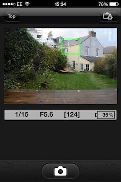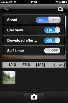 Once you’re in shooting mode with the app, none of the camera controls are functional. This is a pretty serious limitation given that the app itself doesn’t provide any exposure or other controls beyond touch focus and shutter release. This applies to all the shooting modes so, bizarrely, in manual mode the exposure settings are fixed to whatever was set before you entered remote shooting mode. To change them, you have to select camera from the app settings menu, which turns off live view, change the settings on the camera, then select ‘WMU’ to turn Live view back on. In Aperture and Shutter priority modes, the auto element will adjust but again, to change the manual element (i.e. the shutter speed in Shutter priority mode) you have to hand control back to the camera via the app’s setting menu, make the change then re-enter remote shooting mode from the app.