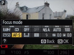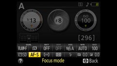 There are three main AF modes: AF-S (Single Servo AF), AF-C (Continuous Servo AF) and AF-A (an Auto mode which selects between them depending on whether the subject is in motion). These are selected from the main information display screen, where you’ll also be offered a Manual focusing option.