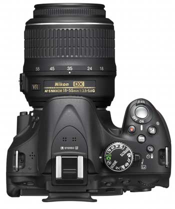 The other tell-tale difference between the D5200 and its predecessor when viewed from the top is the presence of two small grilles located forward of the hotshoe and behind the pop-up flash unit. Marked L and R these are the D5200’s built-in stereo microphones.